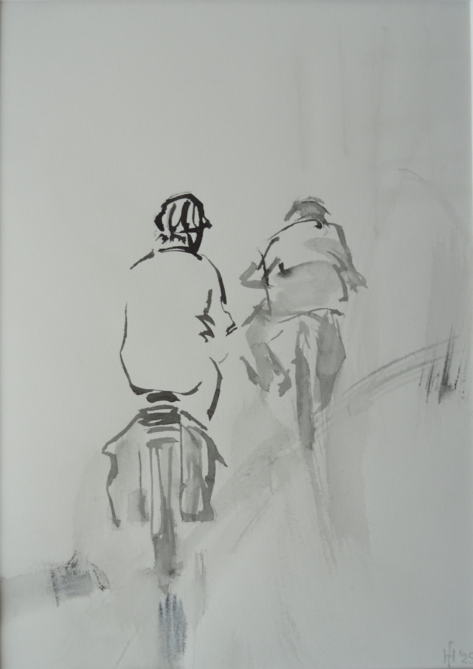 in mijn eigen schaduw, penseeltekening, 31x24cm, 2025